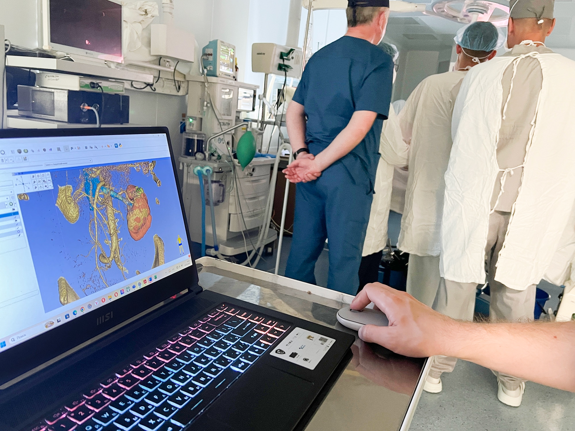 Перед лапароскопическим удалением почки урологи при изучении компьютерной 3d-модели мочевыделительной…