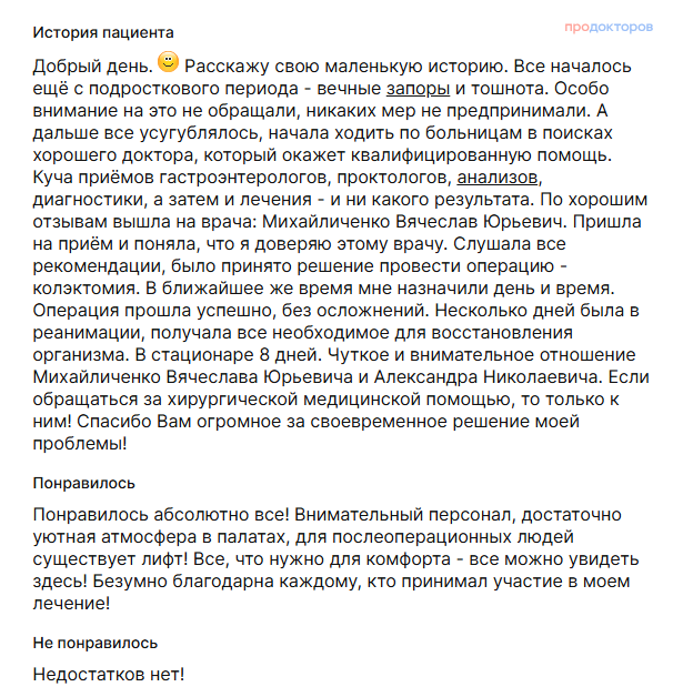 - На странице нашей клиники на сайте «Продокторов»: